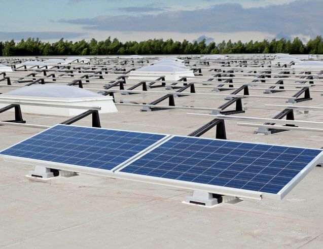DESEMPENHO: O sistema Sika SolarRoof® reduz a quantidade de mão de obra necessária para a aplicação por meio da soldagem a ar quente na membrana Sarnafil® sem penetrações. Normalmente, não é necessário lastro para a instalação.