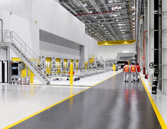 Sistemas de pisos Sikafloor® EPOXISOLUÇÃO ROBUSTA: Os sistemas Sikafloor® epóxi proporcionam excelente resistência à abrasão, resistência química e ao impacto e são adequados para tráfego pesado e condições exigentes. Sikafloor® epóxi oferece cobertura antiderrapante e personalizável para uma ampla gama de aplicações em salas de servidores, salas de máquinas, logística e corredores.