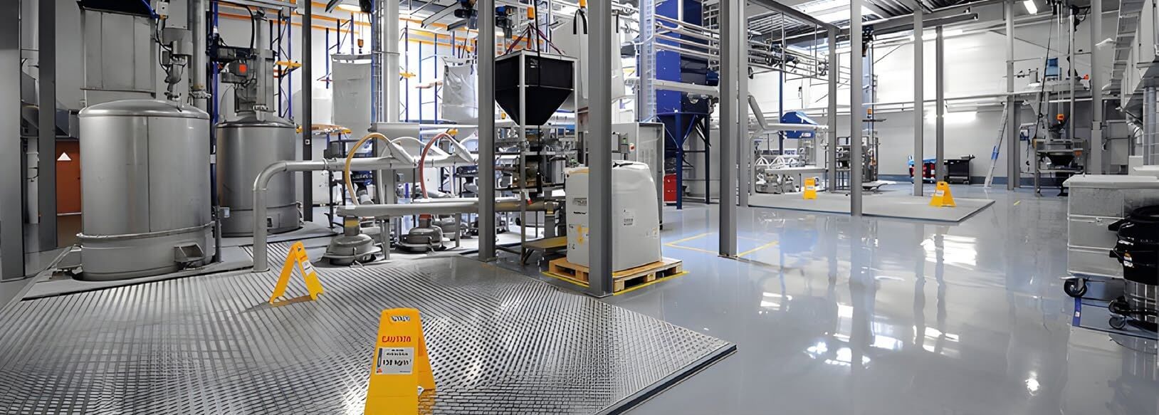 Os pisos de concreto das diferentes áreas de uma indústria sofrem deterioração ao longo do tempo devido a diversos ataques mecânicos e/ou químicos, apresentam desníveis, ou buracos que em algum momento necessitam de reparo, serem nivelados ou possuir declives adequados para escoamento de água. e outras substâncias, bem como alta resistência mecânica, boa resistência à abrasão, boa resistência química e nas demais áreas de processo é necessária alta assepsia, que sejam de fácil limpeza e manutenção, para atender às exigências e regulamentações das entidades governamentais. vigilância e controle com as linhas SikaFloor® e Sika® Ucrete®.